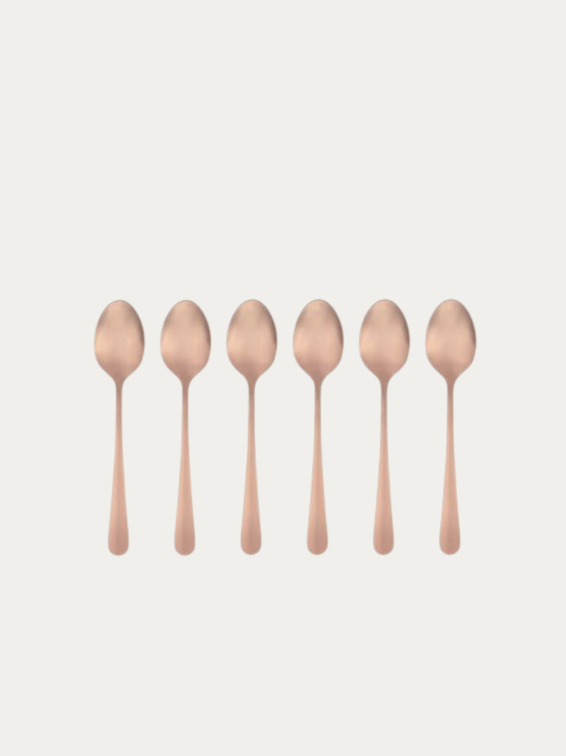 Kauniit kahvilusikat viimeistelevät kattauksen. Ruusukulta on jännittävä värivaihtoehto kattaukseen, täydellinen kun tahdot yllättää. Ruostumaton teräs on pinnoitettu kestävällä PVD-pinnoitteella. Pituus 14,2 cm. Vahvuus 1,2 mm. Käsinpesu.