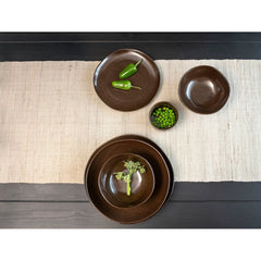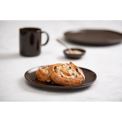 Hienostuneesti epäsymmetrinen kivikeraaminen leipälautanen. Väri suklaanruskea. Halkaisija 20 tai 26 cm. Uunin, mikron ja konepesun kestävä.