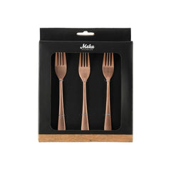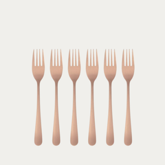 Kauniit leivoshaarukat viimeistelevät kattauksen. Ruusukulta on jännittävä värivaihtoehto kattaukseen, täydellinen kun tahdot yllättää. Ruostumaton teräs on pinnoitettu kestävällä PVD-pinnoitteella. Pituus 14,1 cm. Vahvuus 1,2 mm. Käsinpesu.