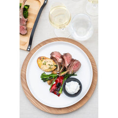 Kaunis, aavistuksen kaareva tarjotin/tarjoilualusta on valmistettu muotoon puristetusta pajuvanerista. Halkaisija 30 cm. Käsinpesu, kuivattava pesun jälkeen.