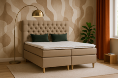 Tämä Unicon toimittama pussijousitettu jenkkisänky on 160 cm leveä ja beige sävyinen, sopien erinomaisesti tilaan, jossa arvostetaan tilaa ja hyvää unta! Saatavilla myös 180cm. Kaksi kerros jousitus takaa laadukkaat yöunet.