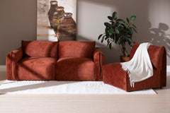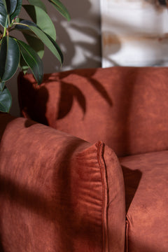 Nyborg sohvaryhmä sisältää 3-istuttavan sohvan ja yksittäisen nojatuolin lämpimän kuparin sävyssä, mukavuudesta tinkimättä.