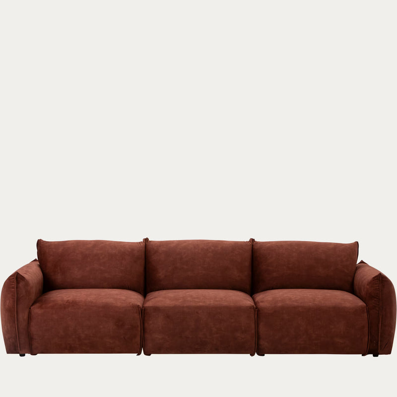 Nyborg 3-istuttava maxi -sohva on kuparin sävyinen ja tarjoaa mukavan tilan rentoutumiseen sohva on rakennettu moduuleista joten voit halutessasi irrottaa osan erilliseksi tuoliksi.