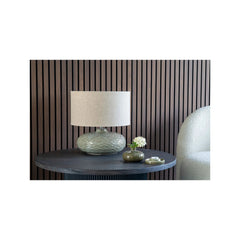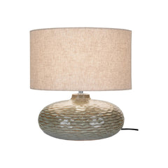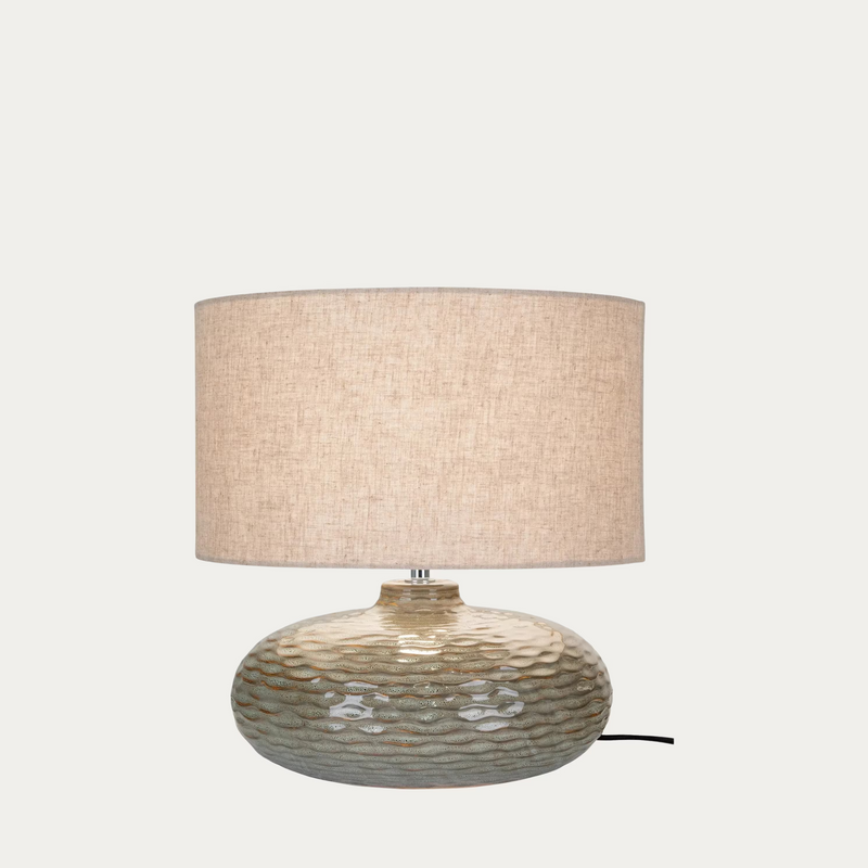 Tyylikäs ja tunnelmallinen pöytävalaisin tuo pehmeää valoa ja eleganttia ilmettä kotiisi. Vihreän sävyinen, aaltoilevalla pinnalla viimeistelty keramiikkarunko yhdistyy luonnolliseen kangasvarjostimeen, joka suodattaa valon miellyttävästi. Valaisin sopii täydellisesti yöpöydälle, olohuoneen sivupöydälle tai työpisteen tunnelmavalaistukseen. Yhdistä muihin luonnonmateriaaleihin luodaksesi harmonisen sisustuksen.