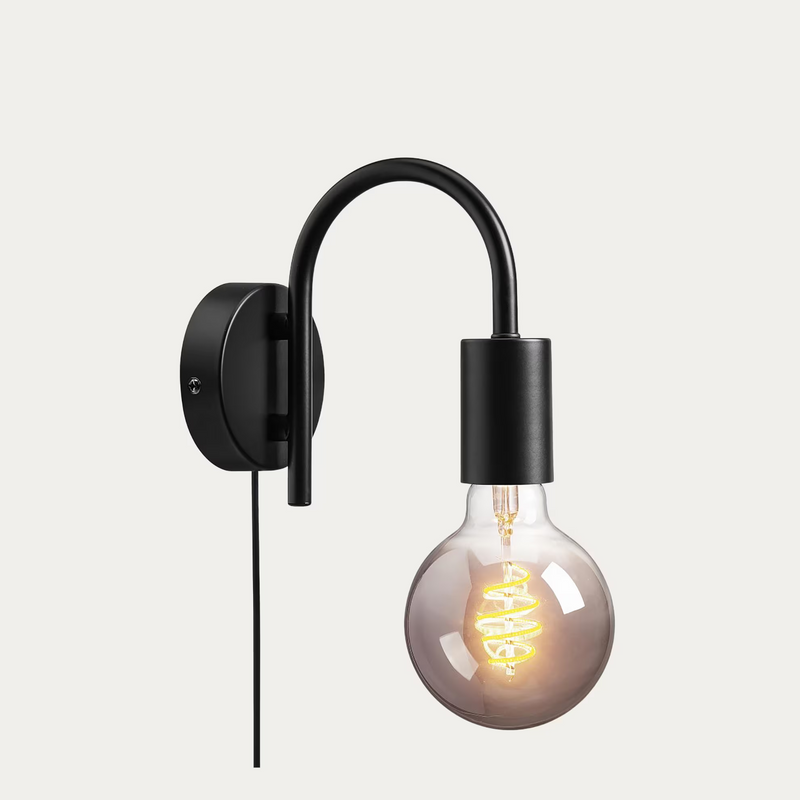 Minimalistinen ja moderni seinävalaisin mustaa metallia. Pelkistetyn valaisimen ulkonäköön