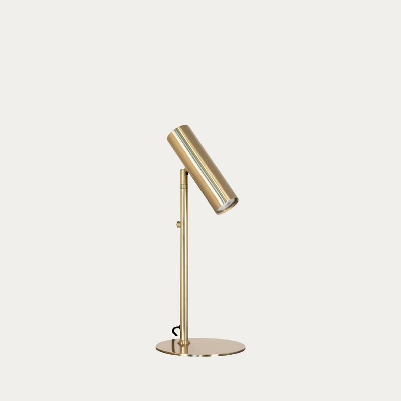 Tuo työpöydällesi tai yöpöydällesi ripaus modernia eleganssia tällä messinkisellä pöytävalaisimella. Sylinterimäinen valopää ja säädettävä varsi mahdollistavat valon suuntaamisen juuri sinne, missä sitä tarvitset – täydellinen luku- tai työvaloksi. Kiiltävä messinkipinta antaa valaisimelle ylellisen ja ajattoman ilmeen, joka sopii monenlaisiin sisustustyyleihin. Yhdistä muihin metallisiin yksityiskohtiin yhtenäisen ja tyylikkään kokonaisuuden luomiseksi.