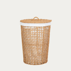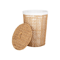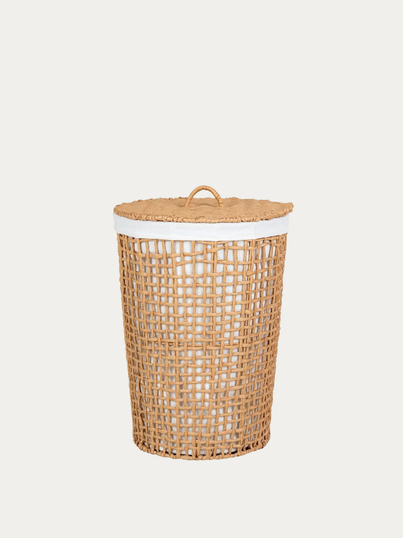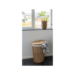 Tyylikäs ja käytännöllinen pyykkikori tuo luonnollista lämpöä kotiisi. Kori on valmistettu punotusta paperista, ja sen luonnonvärinen ulkokuori yhdistyy kauniisti valkoiseen sisäkankaaseen. Irrotettava kansi ja käytännöllinen kahva tekevät korista helppokäyttöisen ja siirrettävän. Ø42 cm ja korkeus 56 cm tekevät siitä tilavan vaihtoehdon kodin pyykille. Sopii täydellisesti kylpyhuoneeseen, makuuhuoneeseen tai kodinhoitohuoneeseen.