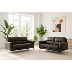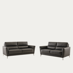 Tämä moderni nahkasohvaryhmä sisältää kahden ja kolmen istuttavan nahkasohvan, jotka tuovat olohuoneeseesi ajattoman ja elegantin ilmeen. Sohvien hieman normaalia korkeampi selkänoja tarjoaa erinomaisen tuen ja takaa mukavan, ryhdikkään istuma-asennon myös pidemmäksi aikaa – täydellinen valinta niin arkeen kuin vieraille.
