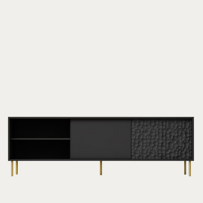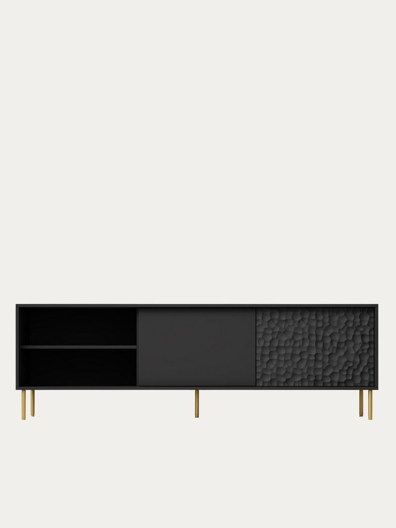 Musta väri yhdistettynä kultaisiin jalkoihin luo modernin ja ylellisen ulkonäön, joka sopii monenlaisiin sisustustyyleihin. Rock TV-taso on suunniteltu kestämään aikaa niin ulkonäöltään kuin rakenteeltaankin.