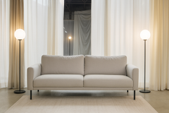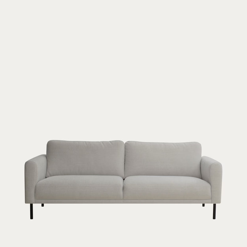 Ruka 3-istuttava sohva on hillityn vaaleanharmaa ja tarjoaa mukavan paikan rentoutumiseen kotona tyylikkäällä, selkeällä muotoilullaan.