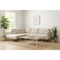 Unico Finlandin avokulmasohva tuo olohuoneeseen raikkaan ja modernin ilmeen, jossa yhdistyvät selkeä muotoilu, mukavuus ja käytännöllisyys. Sohvan ilmava rakenne ja sirot metallijalat antavat kokonaisuudelle keveyttä, joka sopii niin skandinaaviseen sisustukseen kuin minimalistisiin tiloihin.