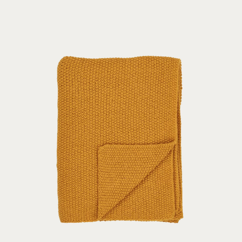 Pehmeä ja lämmin neulottu torkkupeitto tuo kodikasta tunnelmaa sohvalle, nojatuoliin tai sängyn päälle. Rouheapintainen neulos antaa peitolle ilmettä ja tekee siitä kauniin sisustuselementin myös taiteltuna. Torkkupeitto on saatavilla kahdessa upeassa sävyssä: lämmin okra tuo aurinkoista energiaa tilaan, kun taas syvä tummansininen luo rauhallista ja ylellistä tunnelmaa. Täydellinen kumppani rentouttaviin hetkiin. Torkkupeitteen materiaali on 100 % kierrätettyä puuvillaa.