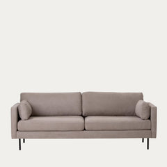 Sohva tarjoaa mukavasti tilaa kolmelle, ja sen selkeät linjat tekevät siitä helposti yhdistettävän erilaisiin huonekalukokonaisuuksiin. Tukevat tyynyt tuovat lisämukavuutta rentoutumishetkiin.