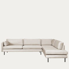 Copenhagen nordic avokulmasohva on verhoiltu pehmeällä beigellä sametilla, joka tuo huoneeseen lämpöä ja mukavuutta. Samettipinta tuntuu miellyttävältä ihoa vasten ja tekee sohvasta viihtyisän paikan rentoutumiseen.
