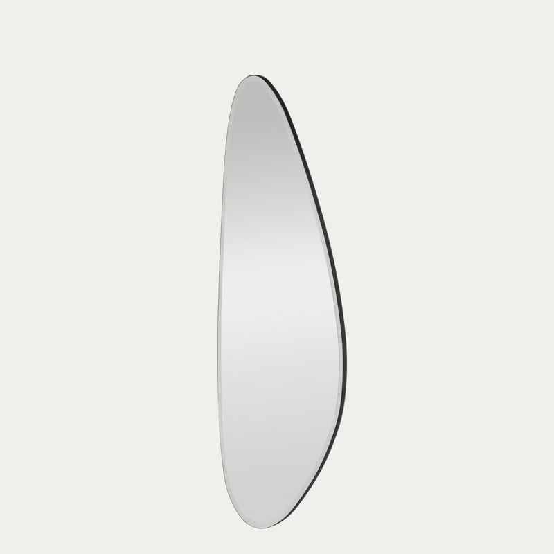 Ohut ja huomaamaton kehys korostaa peilin pehmeää muotoa ja antaa sille ilmavan, kelluvan vaikutelman. Tämä peili toimii täydellisesti niin yksinään kuin osana suurempaa kokonaisuutta.