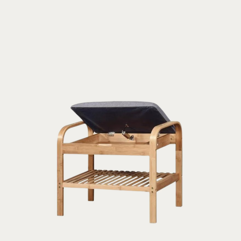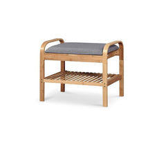 Sia-eteispenkki on tyylikäs ja käytännöllinen ratkaisu kodin sisääntuloon. Penkissä yhdistyvät kauniisti luonnonvärinen puurunko ja vaaleanharmaa, pehmustettu istuinosa, joka kätkee sisäänsä kätevän säilytystilan. Istuimen alta avautuva laatikko sopii täydellisesti esimerkiksi hansikkaiden, avainten tai muiden pienten tarvikkeiden säilyttämiseen. Alaosassa oleva säleikköhylly tarjoaa tilaa kengille, pitäen eteisen siistinä ja järjestyksessä.
