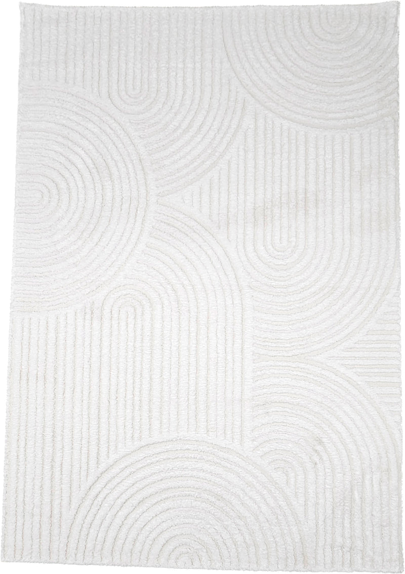 Solar-matto on valkoinen, kauniilla kohokuvioidulla kuviolla varustettu sisustukseen sopiva matto, jota saa kahdessa eri koossa.