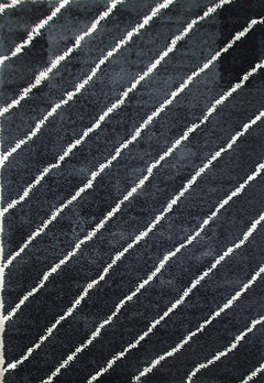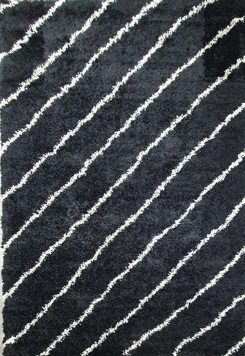 Tämä Solina-matto tuo mustavalkoisen tehosteen koteihin ja tiloihin. Matossa on musta pohja, jossa kulkee valkoiset viirut vinottain.