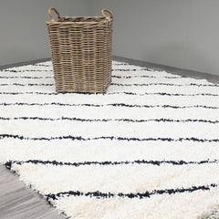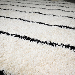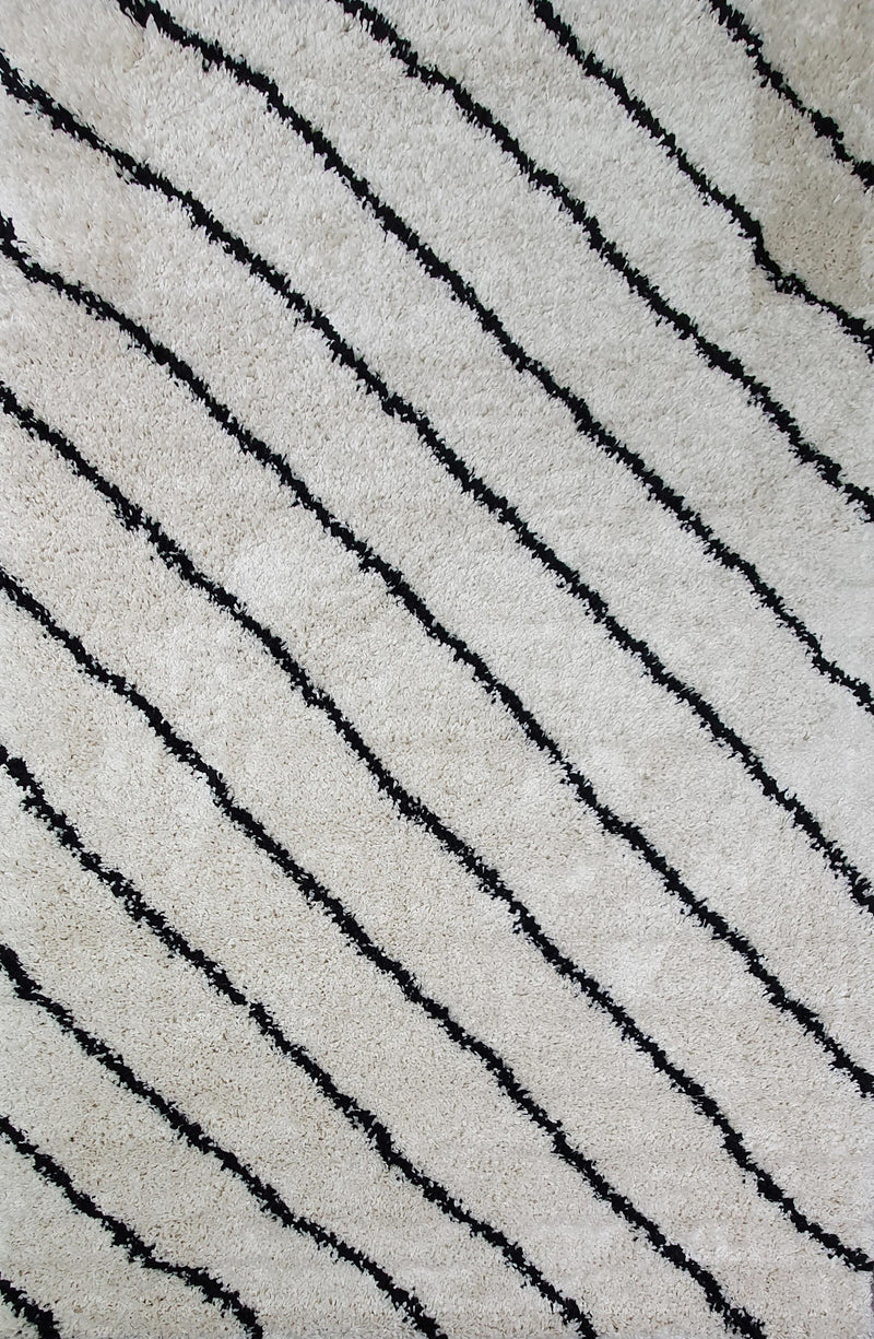 Solina-matto on käytännöllinen valinta tilaan kuin tilaan. Valkoinen pohjaväri ja mustat raidat muodostavat selkeän ja modernin kuosin, joka tuo tilaan raikkautta ilman liiallista korostusta.