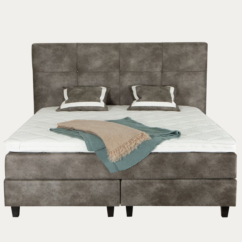 Tempolux jenkkisänky muistivaahdolla, harmaanruskeassa sävyssä. Saatavana ilman päätyä tai päädyn kanssa sekä monilla petauspatjavaihtoehdoilla.