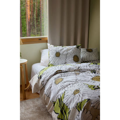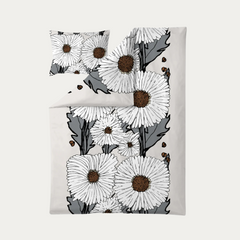 Hellekesä-kuosi on Howard Smithin 1970-luvulla suunnittelema kuosi, joka on lämmin tuulahdus retrotunnelmaa. Hellekesä-pussilakanasetti on valmistettu pehmeästä 100% puuvillasta. Pussilakanassa on petaamista helpottavat käsiaukot, pääty avoin, lankaluku 144 TC. Setti sisältää yhden tyynyliinan.