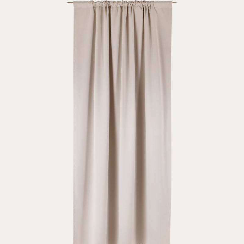 Yksivärisen Pimari-pimennysverhon materiaali on kauniisti laskeutuvaa, vastuullista 100% kierrätettyä polyesteriä. Pimari-verho on helppo yhdistää kuviollisiin verhoihin tai käyttää sellaisenaan. Pimentävällä verholla estät tehokkaasti valonsäteiden pääsyn tilaan. Kaikki Vallilan verhot ovat viimeistelty ompelemalla sivut ja helma, yläreunassa kulkee kuja verhotankoa varten. Verhon mukana tulee lyhennysnauha, jolla verhon voi lyhentää helposti silittämällä ilman ompelua.