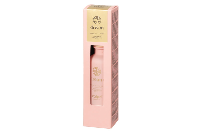 Valpe Dream huonetuoksu yhdistää bergamotin raikkauden, vihreiden lehtien luonnollisuuden ja myskin pehmeän vivahteen. Tämä kokonaisuus luo miellyttävän ja harmonisen tuoksuelämyksen kotiin tai työtilaan.