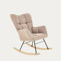 Rauhallisia hetkiä rentoutumista varten – tämä moderni keinutuoli yhdistää perinteisen keinumisen ilon ja nykyaikaisen muotoilun. Pehmeä verhoilu, muhkea pehmustus ja ergonomisesti muotoillut käsinojat takaavat miellyttävän istumakokemuksen niin lukuhetkiin, vauvan nukuttamiseen kuin rentoutumiseen päivän päätteeksi.