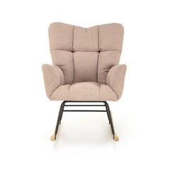 Keinujalat ovat vaaleaa puuta ja tuolin runko tukevaa metallia, mikä tekee rakenteesta vakaan ja visuaalisesti kevyen. Keinutuoli sopii täydellisesti olohuoneeseen, lastenhuoneeseen tai vaikkapa lasitetulle parvekkeelle.