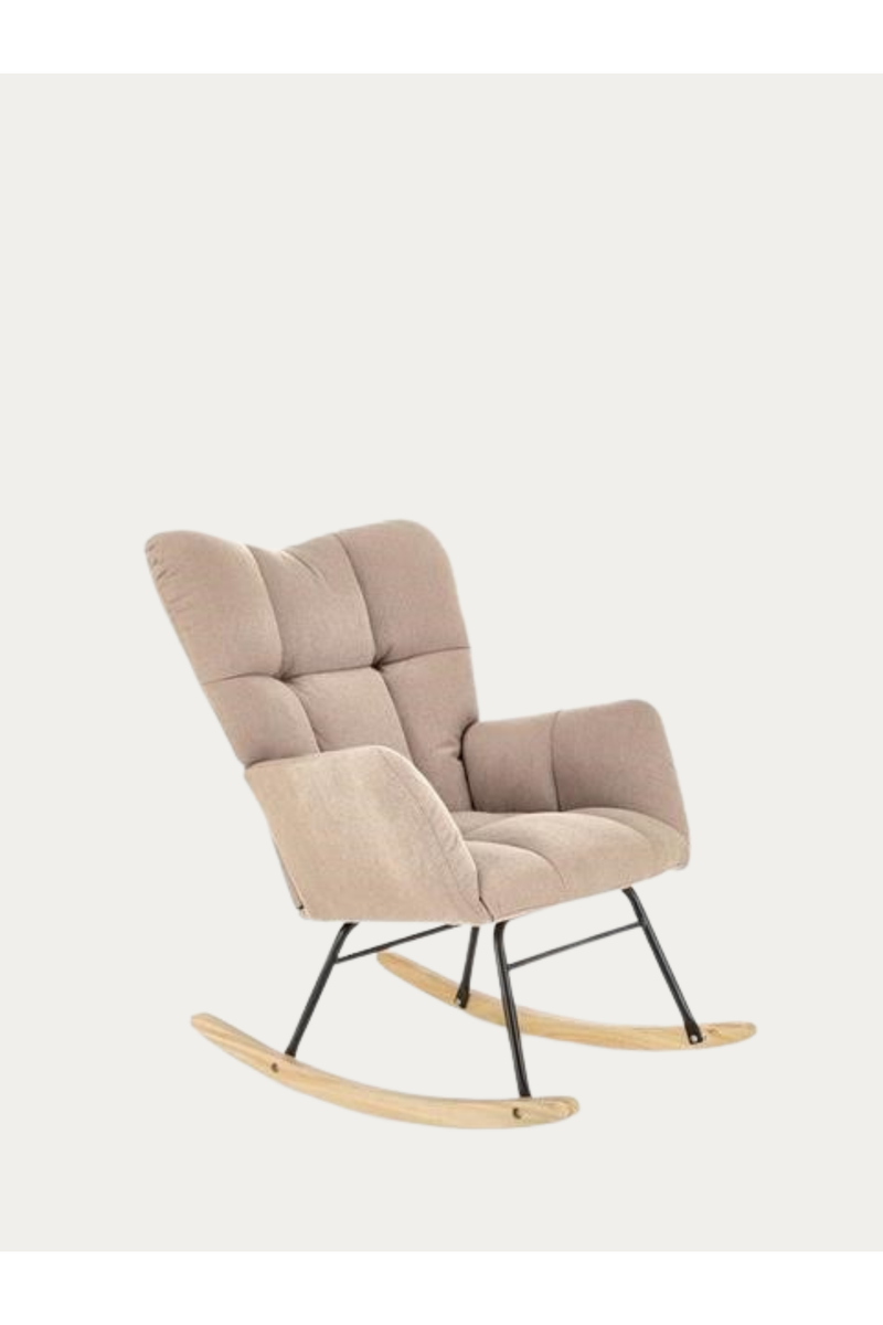Keinujalat ovat vaaleaa puuta ja tuolin runko tukevaa metallia, mikä tekee rakenteesta vakaan ja visuaalisesti kevyen. Keinutuoli sopii täydellisesti olohuoneeseen, lastenhuoneeseen tai vaikkapa lasitetulle parvekkeelle.