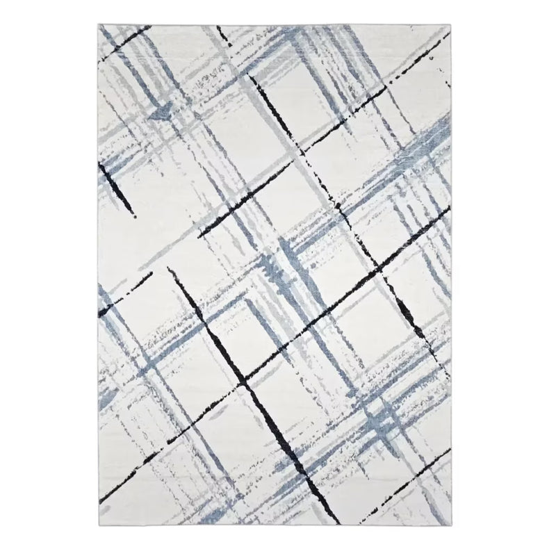 Village's Petra Cashmire matto tuo raikkautta ja kodikkuutta tilaan vaaleansävyisellä pohjalla ja hienovaraisilla harmaan ja sinertävän sävyisillä kuvioilla. Se sopii hyvin erilaisten sisustustyyppien pariksi.