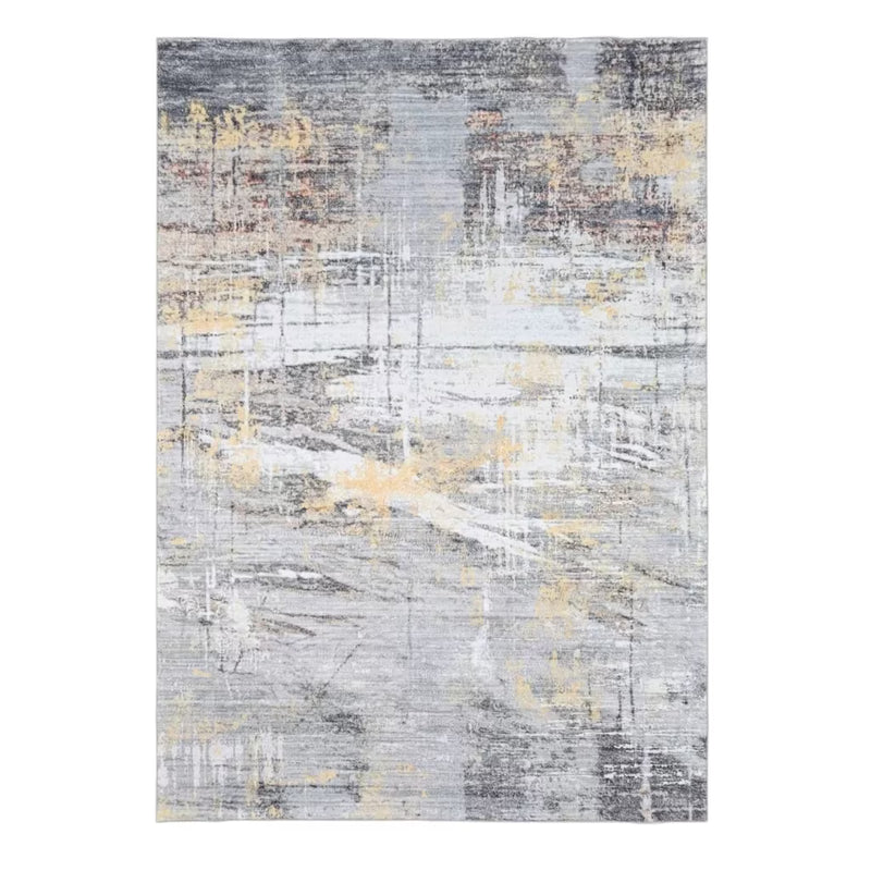 Village's Zara Cashmire -matto harmaan ja beigein sävyin, modernilla kuvioinnilla. Saatavana kahdessa eri koossa olohuoneen tai makuuhuoneen sisustukseen.
