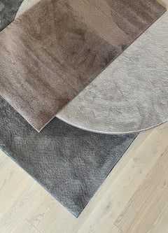 VM Carpetin hohto-matto harmaan sävyssä on pehmeä ja miellyttävä jalan alla. Saatavilla useissa suorakaiteen ja pyöreän muodon ko'oissa.