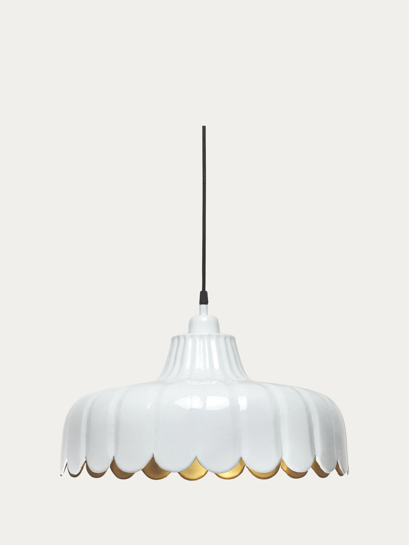 Wells kattovalaisin valkoisena ja kullanvärisillä yksityiskohdilla tuo klassista charmia sisustukseen. Saatavilla useita kokoja eri tiloihin.