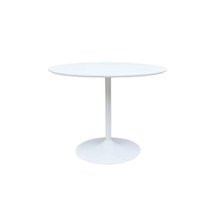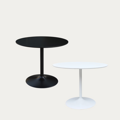 Tyylikäs maalattu ruokapöytä kahdessa värivaihtoehdossa. Pöydässä on MDF-kansi ja metallinen trumpettijalka. Korkeus 75 cm, kannen paksuus 1,8 cm, halkaisija 90 cm.