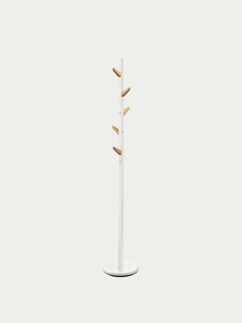 Woodie-pystynaulakko on käytännöllinen ja tyylikäs lisä kodin tai toimiston eteistilaan. Sen moderni ja pelkistetty muotoilu yhdistyy kauniisti puisilla ripustimilla varustettuun runkoon, jotka tuovat lämmintä ja luonnonläheistä ilmettä sisustukseen. Naulakko seisoo tukevasti pyöreällä jalustalla, ja sen useat koukut tarjoavat reilusti tilaa takeille, huiveille, laukuille ja hatuille.