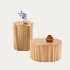 Woody-sohvapöytä on ajaton ja näyttävä valinta, joka tuo luonnonläheistä tunnelmaa sisustukseen. Pöydän kauniisti pyöristetty muoto ja pystysuuntaisesti uritettu runko tekevät siitä tyylikkään katseenvangitsijan, joka istuu vaivattomasti niin moderniin, skandinaaviseen kuin boheemiinkin kotiin.